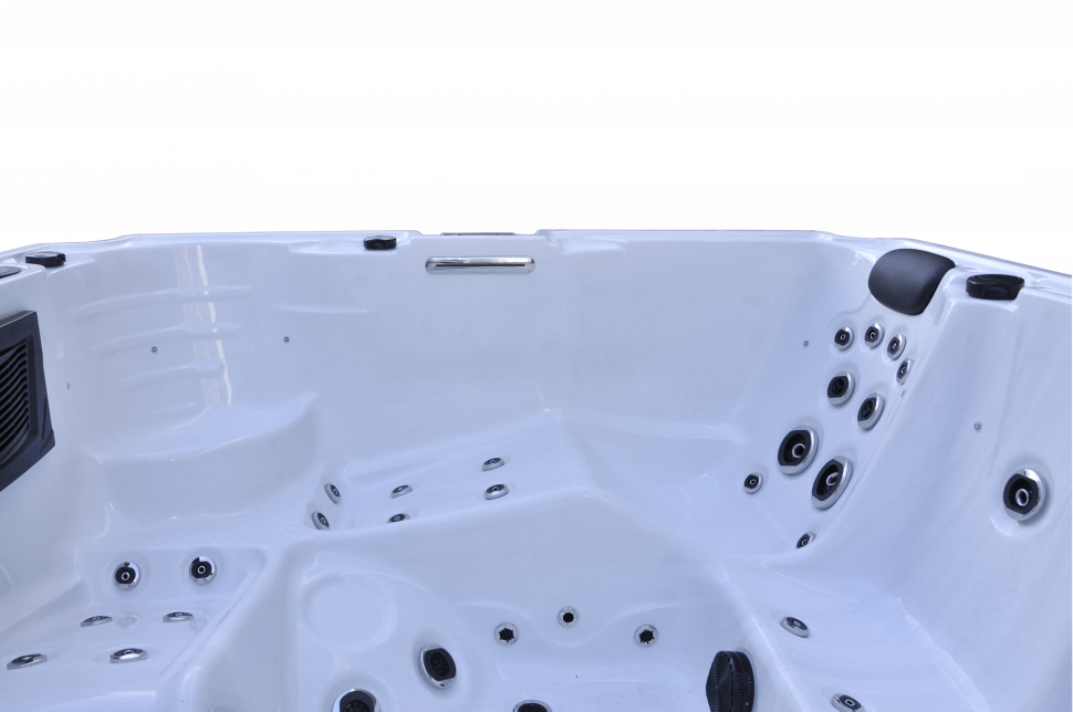 - Освещение: подводный светильник LED, светодиодная подсветка по периметру чаши, два фонтанчика с LED подсветкой, а также два встроенных ведерка для льда с LED подсветкой