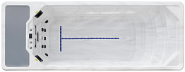 Каждый элемент продуманного дизайна наших спа-бассейнов имеет свою функцию и предназначение. Поручни над противотоком и вдоль стен позволяют выполнять различные упражнения, а также обеспечивают поддержку юным начинающим пловцам. Выровненное дно с противоскользящей поверхностью используется для легкого и безопасного передвижения в бассейне, а его графическая структура также упрощает ориентирование под водой. Ступеньки предназначены не только для входа в бассейн, но и для удобной посадки, лежания и расслабления в гидромассажном бассейне.