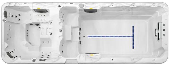 Четыре мощных насоса (два по 2,2 кВт и два по 1,5 кВт) работают в разных зонах, обеспечивая интенсивный массаж 62 форсунками. Продуманная конфигурация гарантирует эффективное воздействие на все группы мышц и создает оптимальные условия для плавания.